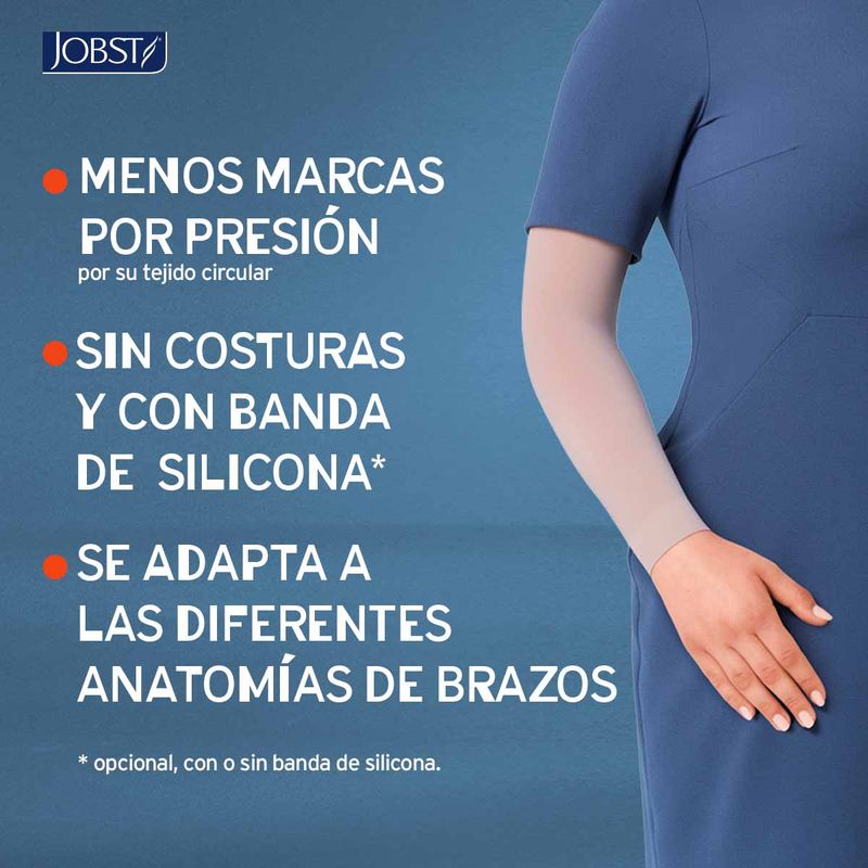 Experimenta la combinación ideal de comodidad y terapia con la manga JOBST BELLA LITE que ya ayuda a mantener el tamaño de la extremidad superior del paciente con linfedema. Confeccionadas con un diseño en tejido circular transpirable, suave y listo para usarse.