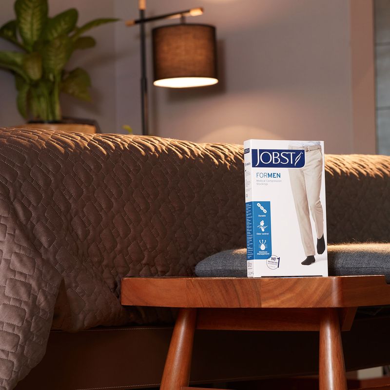 JOBST® Formen son calcetines de compresión diseñados para hombres. Ayudan a reducir los malestares y el dolor ocasionados por los problemas de circulación sanguínea en las piernas. Cuentan con un diseño clásico con punto de canalé, ideal para estilos de vestir casuales y semiformales, por lo que puedes usarlos diariamente en distintas ocasiones. Te ofrecen una excelente durabilidad y cuentan con un sistema que controla la humedad y mal olor, ofreciendo a tus pies una experiencia de sequedad y frescura durante todo el día.
